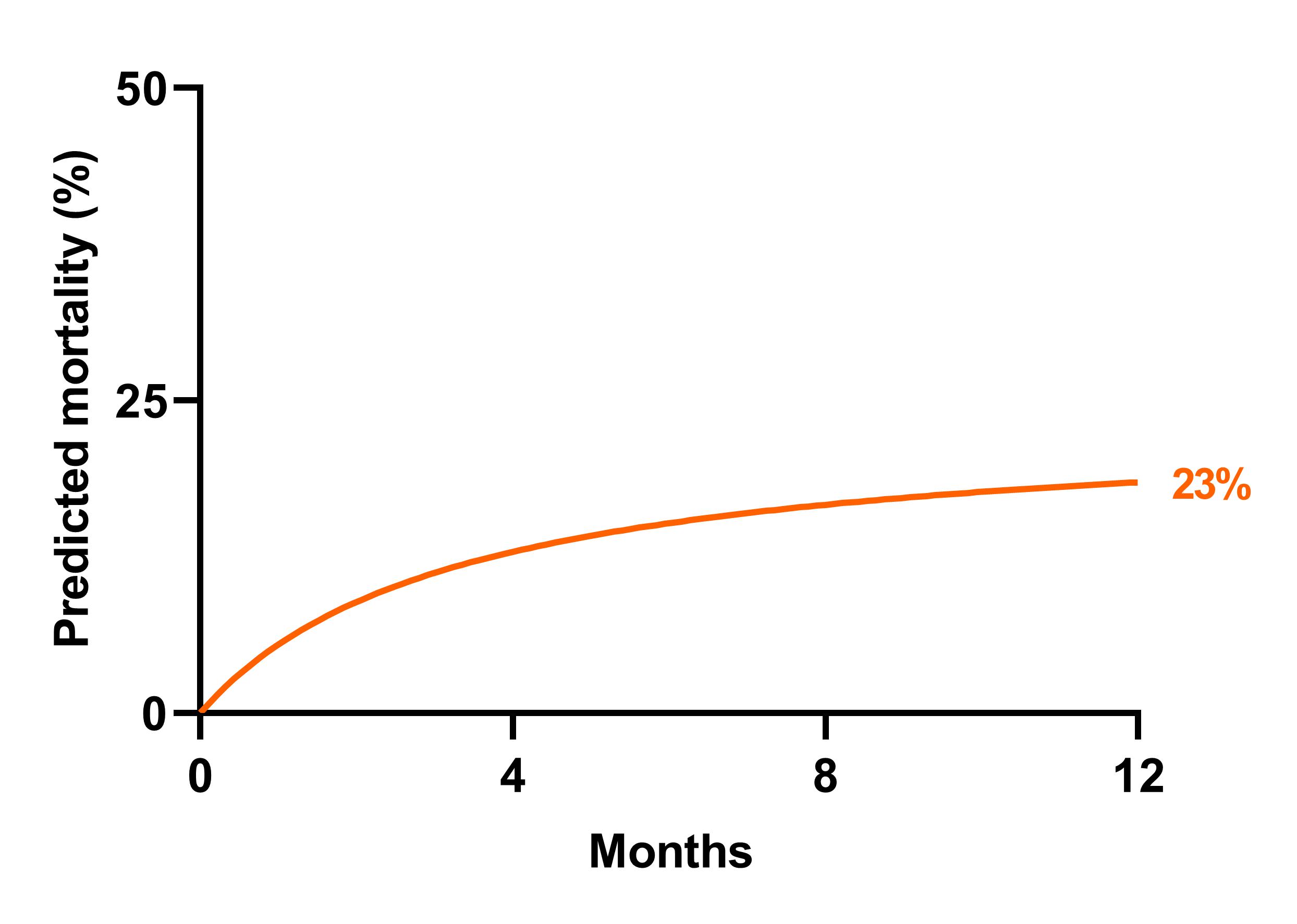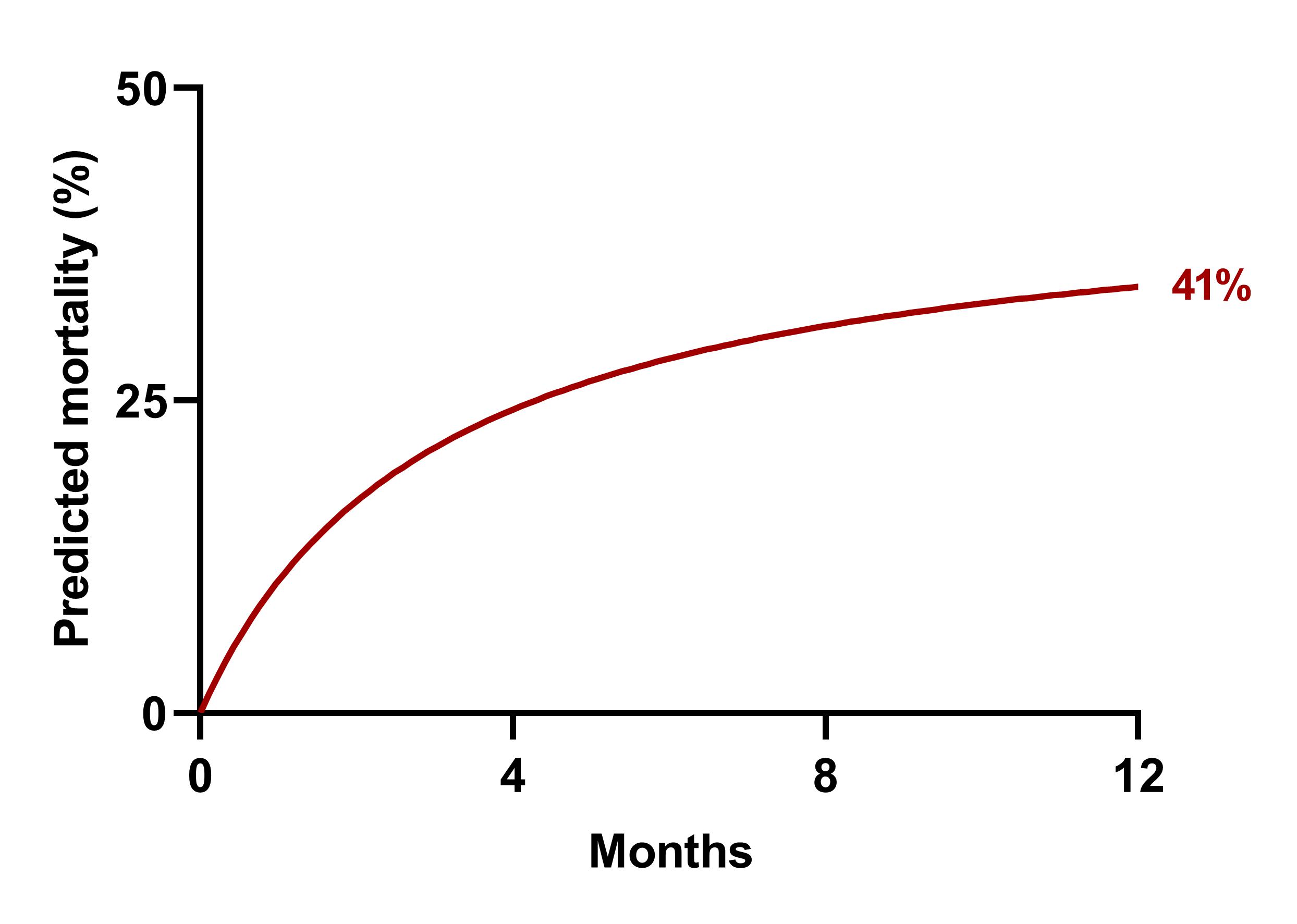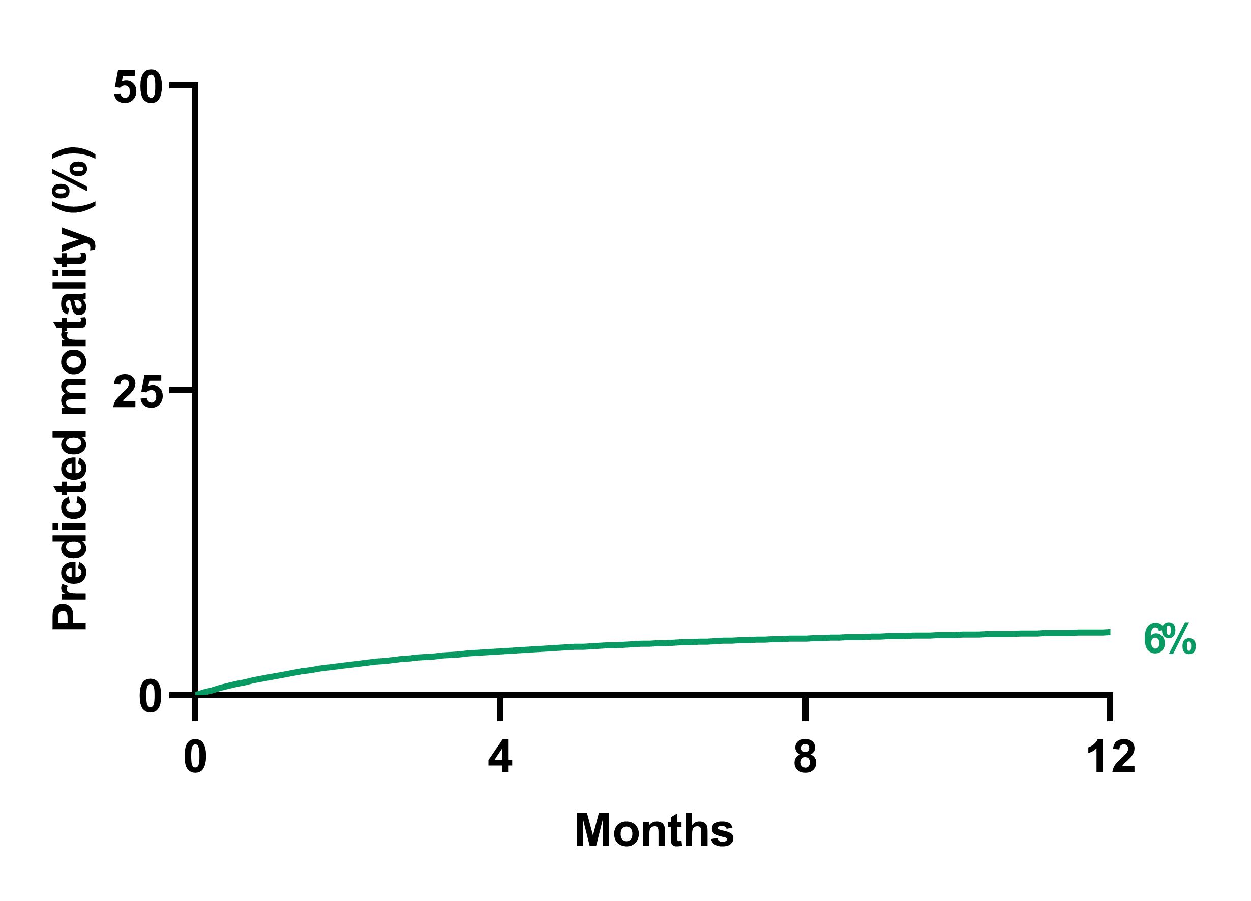 The predicted risk of all-cause mortality at 1 years was 6% in 914 patients (from the TRuE registry) with severe tricuspid regurgitation.